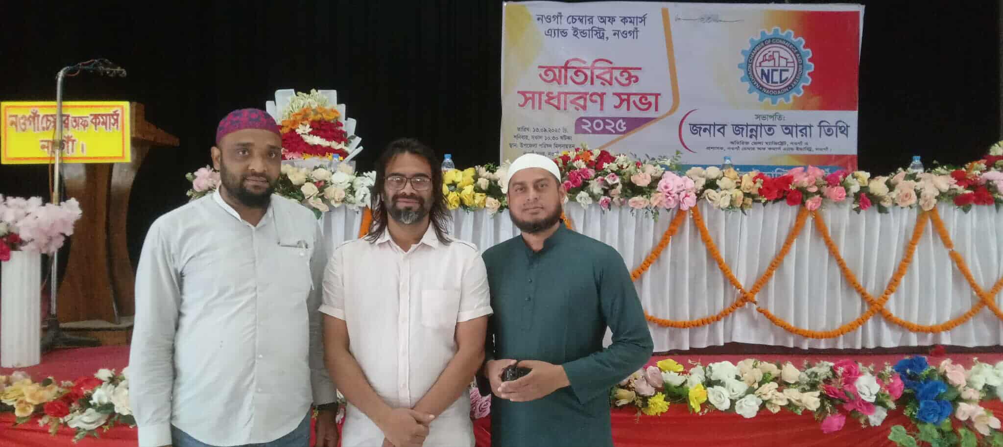 শনিবার দুপুরে নওগাঁ সদর উপজেলা অডিটোরিয়ামে ব্যবসায়িদের সংগঠন চেম্বার অফ কর্মাস এন্ড ইন্ডাষ্ট্রির অতিরিক্ত সাধারণ সভা অনুষ্ঠিত হয়েছে। সভায় সভাপতিত্ব করেন- অতিরিক্ত জেলা ম্যাজিস্ট্রেট ও নওগাঁ চেম্বার অফ কর্মাস এন্ড ইন্ডাষ্ট্রির প্রশাসক জান্নাত আরা তিথি।