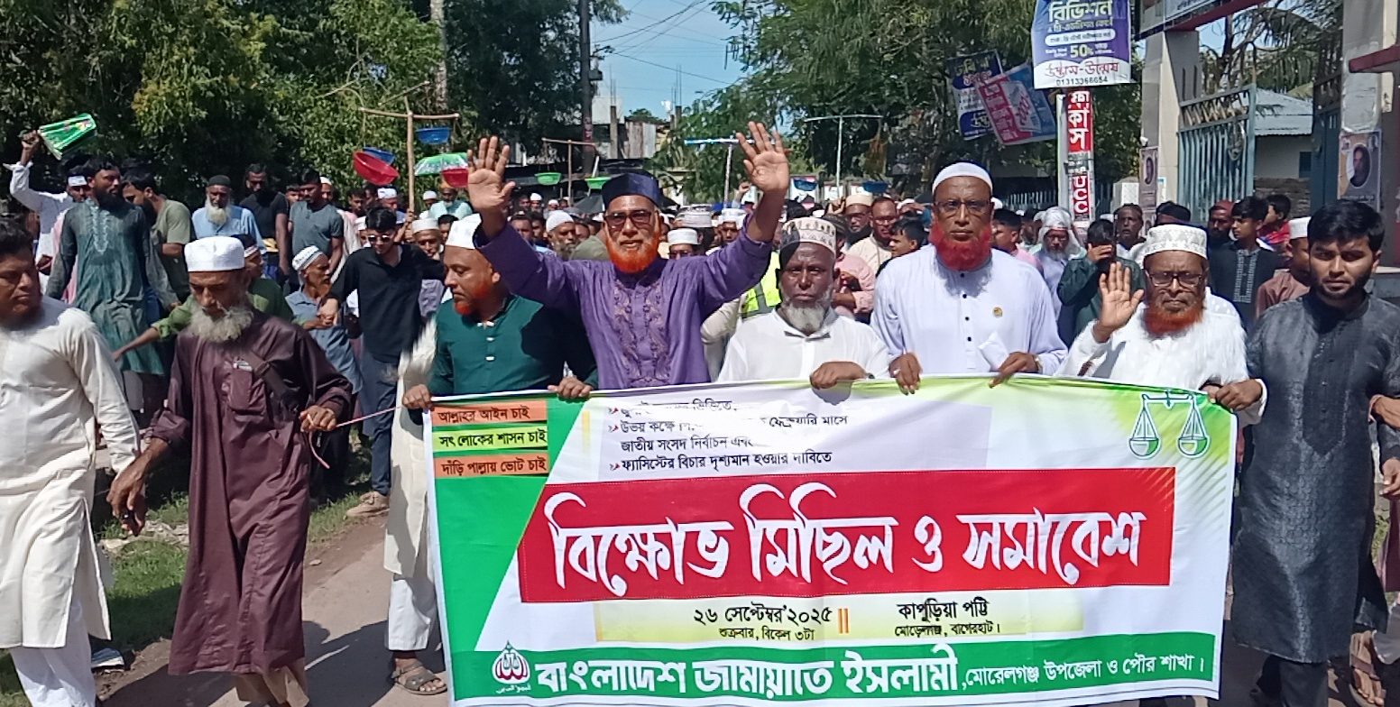 পিআর পদ্ধতিসহ ৫ দফা দাবি আদায়ের লক্ষে মোরেলগঞ্জ জামায়াত ইসলামীর বিক্ষোভ ও সমাবেশ