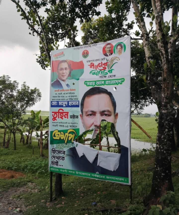 জানা গেছে, নওগাঁ শহর ও বিভিন্ন ইউনিয়নে স্থাপিত বিলবোর্ডে জিয়াউর রহমান, খালেদা জিয়া, তারেক রহমানের ছবির সঙ্গে মাসুদ হাসান তুহিনের ছবিযুক্ত ব্যানার লাগানো ছিল। অভিযোগ অনুযায়ী, রাতের আঁধারে দুর্বৃত্তরা বিলবোর্ডে উঠে এসব ব্যানার ছিঁড়ে ফেলে।