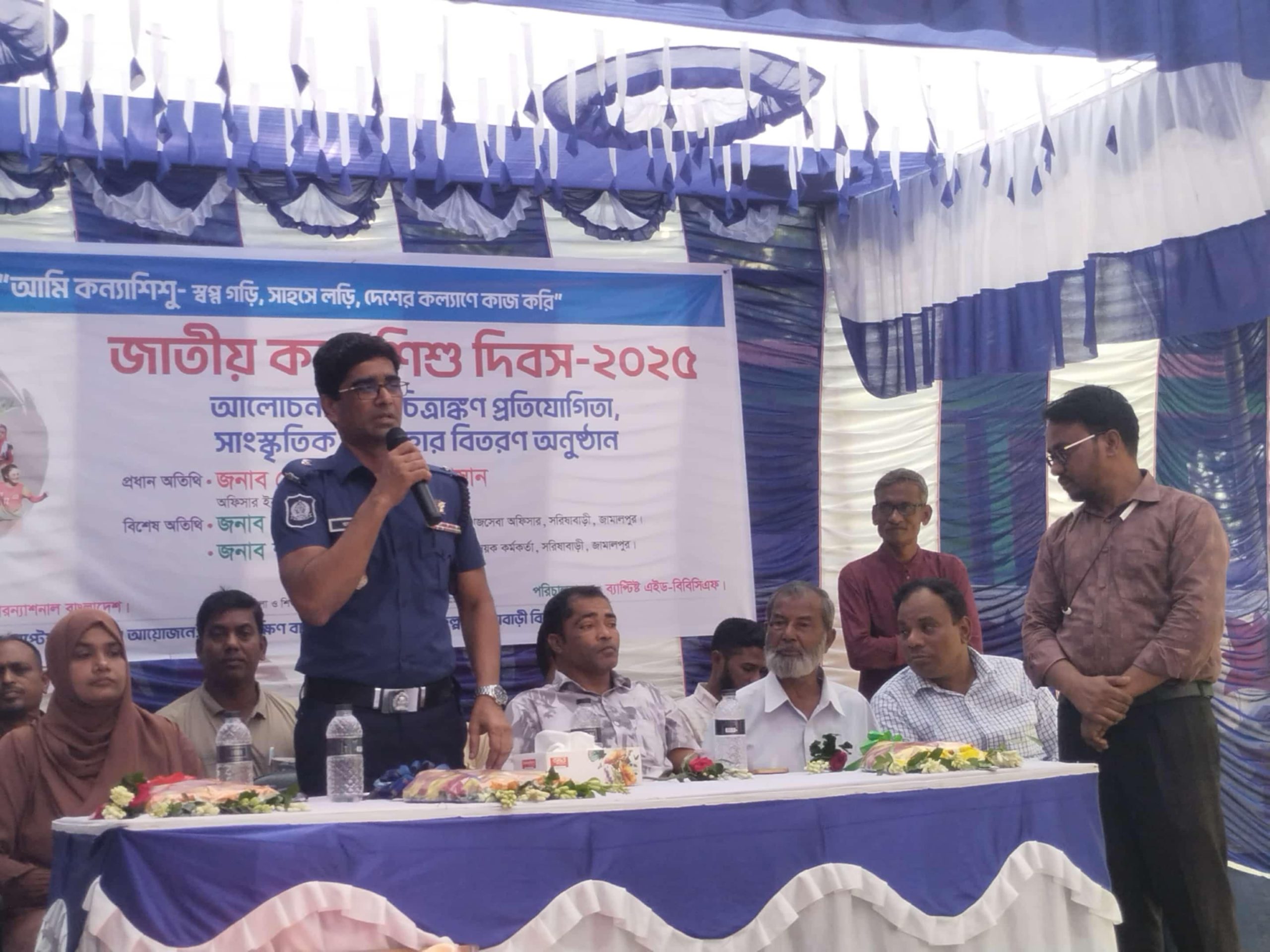 আমি কন্যাশিশু,স্বপ্ন গড়ি সাহসে লডি,দেশের কল্যাণে কাজ করি এ প্রতিপাদ্য কে সামনে রেখে জামালপুরের সরিষাবাড়ীতে জাতীয় কন্যাশিশু দিবস পালন উপলক্ষে আলোচনা সভা, চিত্রাংকন প্রতিযোগীতা, সাংস্কৃতিক অনুষ্ঠান ও উপহার বিতরণ করা হয়েছে। বুধবার (৮ অক্টোবর ) মধ্য ও দক্ষিণ বাংলাদেশ শিশু উন্নয়ন প্রকল্প, সরিষাবাড়ী এর আয়োজনে ব্যাপ্টিষ্ট- এইড বিবিসিএফ এর পরিচালনায় কম্প্যাশন ইন্টারন্যাশনাল বাংলাদেশ এর অর্থায়নে ১১৭ জন মেয়ে শিশুর মাঝে ১টি করে পুতুল, ১১০ জন ছেলেদের মধ্যে ১টি করে ফুটবল,১৫ জন চিত্রাংকন প্রতিযোগীতা বিজয়ী মধ্যে উপহার ও ২২৭ জনের মধ্যে নাস্তা ও দুপুরের খাবার বিতরণ করা হয়েছে।