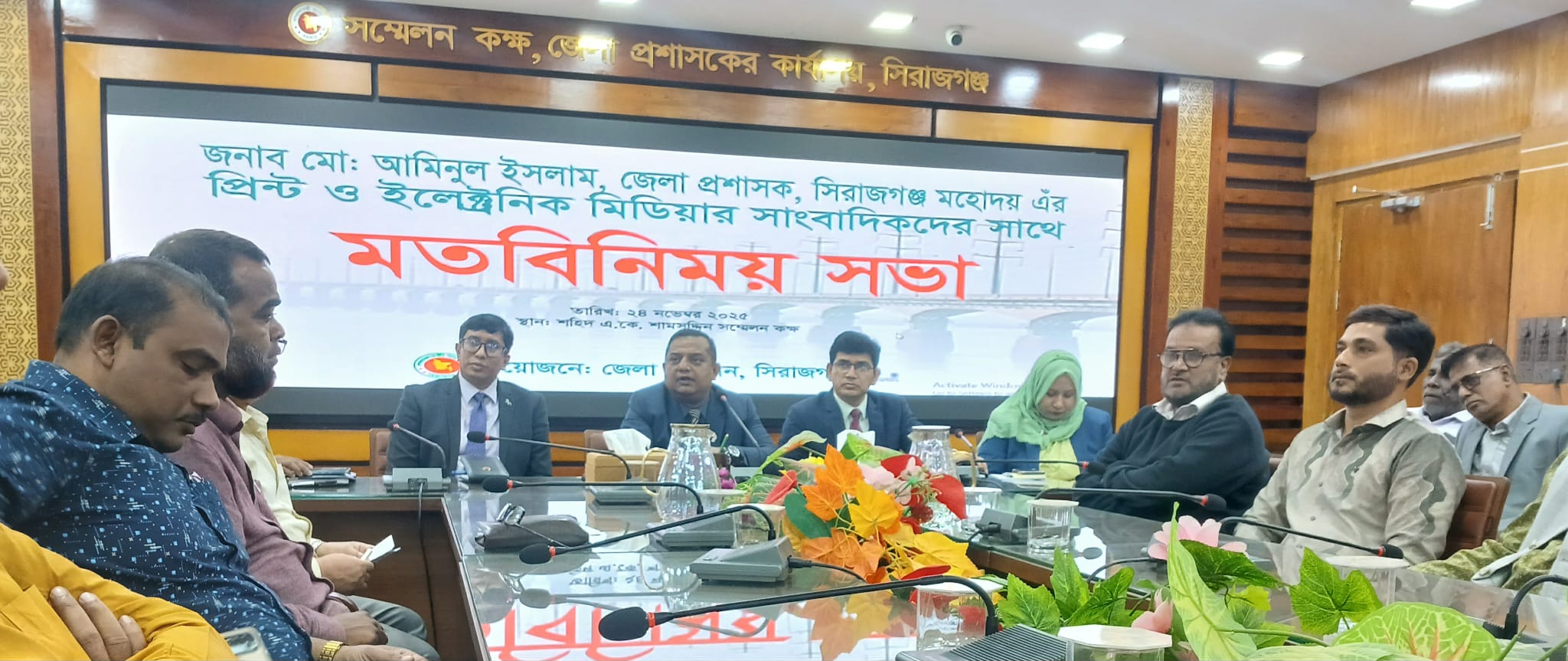 সিরাজগঞ্জের জেলা প্রশাসক মোঃ আমিনুল ইসলাম প্রিন্ট ও ইলেকট্রনিক মিডিয়ার সাংবাদিকদের সাথে এক মতবিনিময় সভায় অনুষ্ঠিত হয়েছেন।