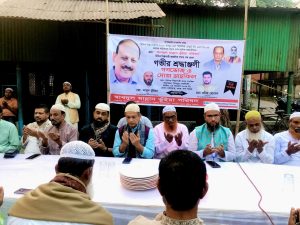 নরসিংদীর শিবপুরে,আমতলা বিসিক শিল্পনগরীতে চৌধুরী নীটওয়ার লিমিটেডে ভয়াবহ অগ্নিকান্ডে নিহত ৫৩ জন শ্রমিক এর আত্মার মাগফিরাত কামনা করে দোয়া মাহফিল ও গণভোজের আয়োজন করা হয়েছে।