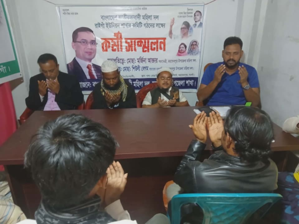 বাংলাদেশ জাতীয়তাবাদী দল,বিএনপি, অঙ্গ ও সহযোগী সংগঠন কতৃক নওগাঁ মহাদেবপুরের বিএনপি নেতা পারভেজ আরেফিন সিদ্দিকী ( জনি)ভাইয়ের আহ্বানে দেশনত্রী বেগম খালেদা জিয়ার দ্রুত রোগ মুক্তি ও সুস্থাতা কামনায় ৫ নং রাইগাঁ ইউনিয়ন শাখা নেতৃবৃন্দ কর্তৃক দোয়া অনুষ্ঠান আয়োজিত হয় ৷ এ সময় রাইগাঁ ইউনিয়নের কামরুজ্জামান, জুলাই যোদ্ধা, মানিক সহ অত্র ইউনিয়নের গন্যমান্য ব্যাক্তি উপস্থিত ছিলেন ৷