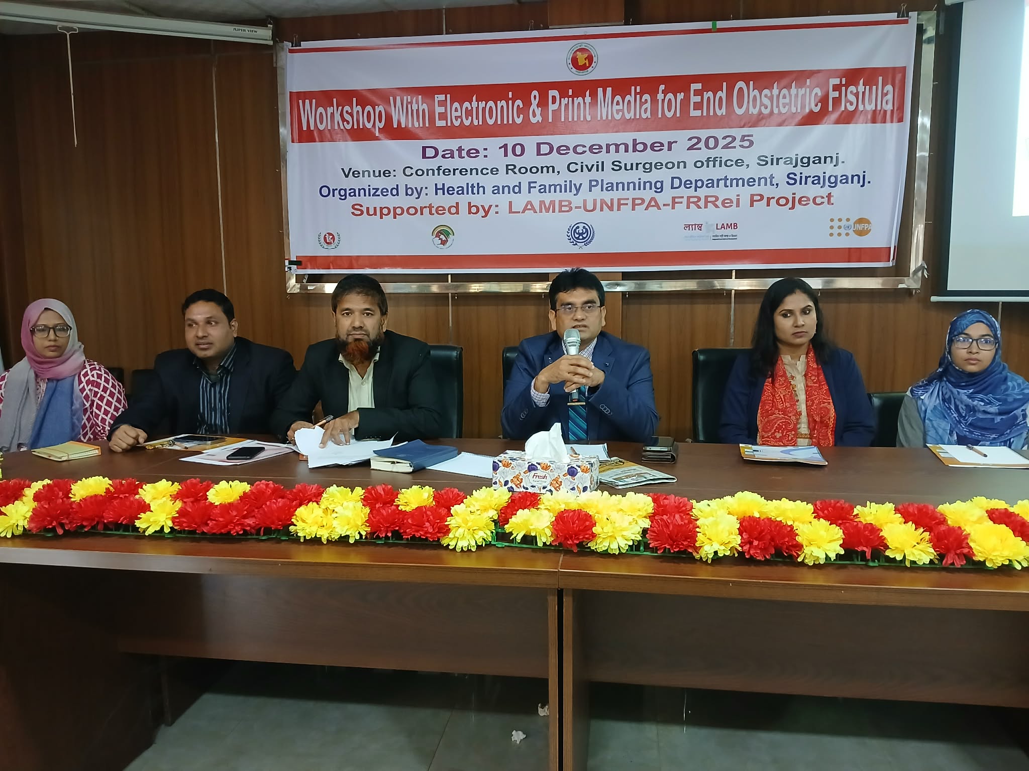 সিরাজগঞ্জে ফিস্টুলা নির্মূল কার্যক্রম নিয়ে প্রিন্ট ও ইলেকট্রনিক মিডিয়ার সাংবাদিকদের জন্য এক কর্মশালা অনুষ্ঠিত হয়।