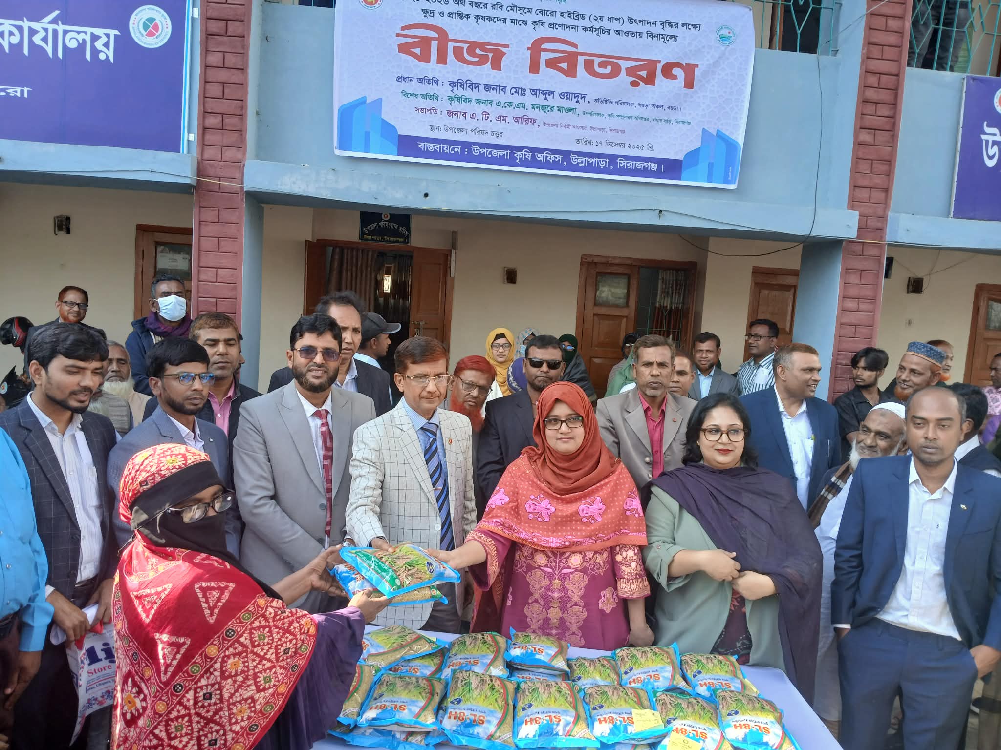 সিরাজগঞ্জের উল্লাপাড়ায় কৃষি প্রণোদনা কর্মসূচির আওতায় আবাদ ও উৎপাদন বৃদ্ধির লক্ষ্যে ক্ষুদ্র ও প্রান্তিক কৃষকের মাঝে বোরো ধানের হাইব্রিড জাতের বীজ বিতরণ করা হয়েছে।