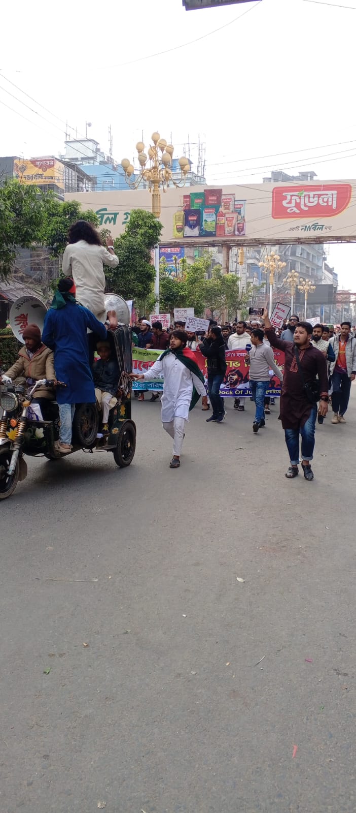 শরিফ ওসমান হাদির হত্যাকারীদের বিচারের দাবিতে রাজশাহীতে বিক্ষোভ মিছিল সমাবেশ অনুষ্ঠিত হয়েছে।