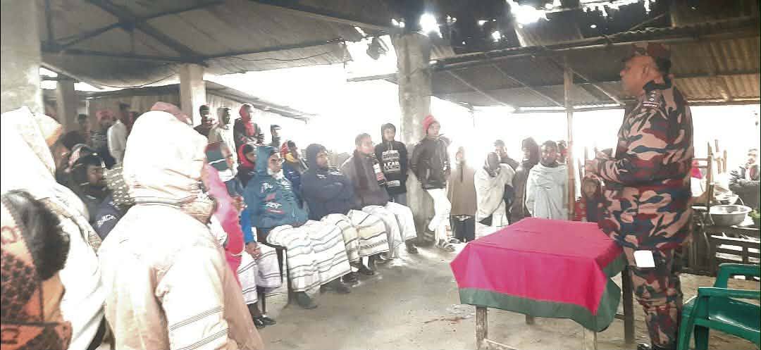 জেসিও -৯০৯২ সুবেদার মাহফুজুর রহমান এর নেতৃত্বে মতবিনিময় সভাটি অনুষ্ঠিত হয়েছে। সভায় স্থানীয় ওয়ার্ড সদস্য, গণ্যমান্য ব্যক্তি বর্গসহ অর্ধশতাধীক ব্যক্তি উপস্থিত ছিলেন। সভায় সীমান্ত হত্যা, অবৈধ ভাবে সীমান্ত অতিক্রম, চোরাচালান দমন, অবৈধভাবে ভারতের অভ্যন্তরে প্রবেশ করে ভারতিও বিল গুলোতে মাছ না ধরা, নারী শিশু পাচার দমন, মাদক চোরাচালানী, মাদকাসক্ত থেকে বিরত থাকবেন ও সামনে জাতীয় নির্বাচন আপনারা মানুষের গুজবে কান দিবেন না ভোটকেন্দ্রে যাবেন এবং আপনাদের ভোট আপনারা দিবেন এ সম্পর্কে আলোচনা করা হয়।