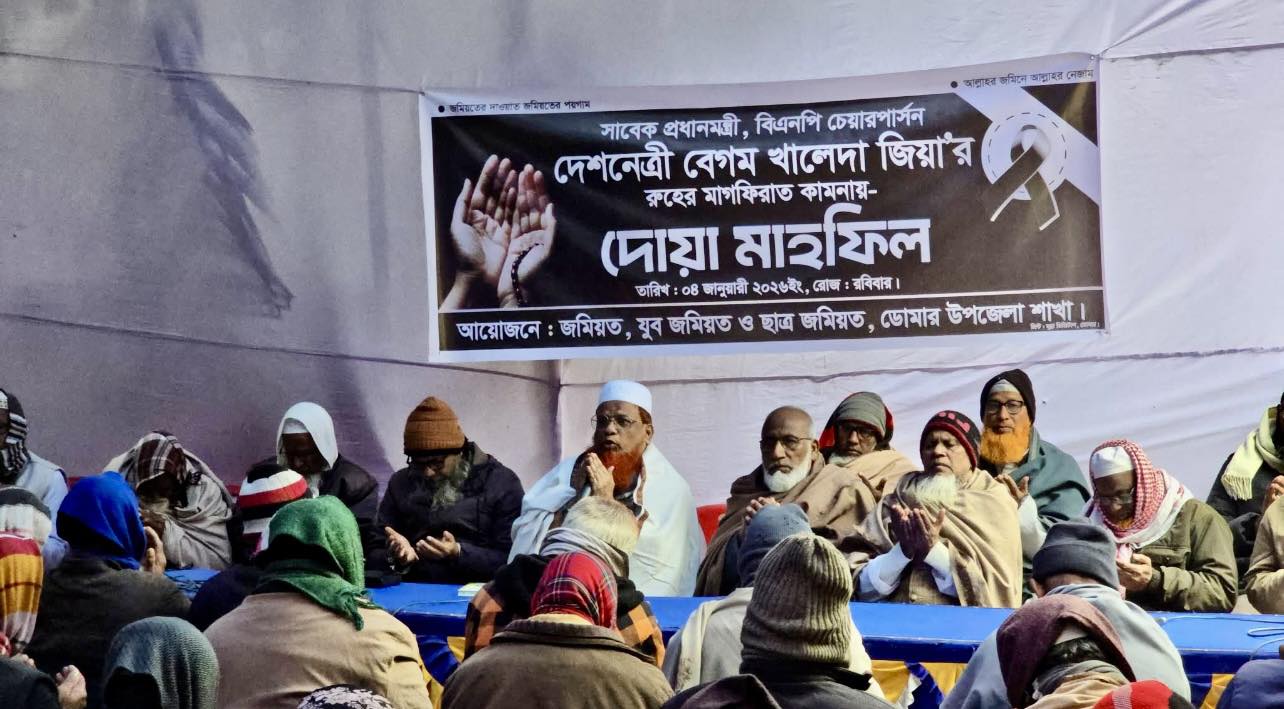 রবিবার (৪ জানুয়ারি) জমিয়ত, যুব জমিয়ত ও ছাত্র জমিয়ত ডোমার উপজেলা শাখার আয়োজনে এ দোয়া মাহফিল অনুষ্ঠিত হয়।