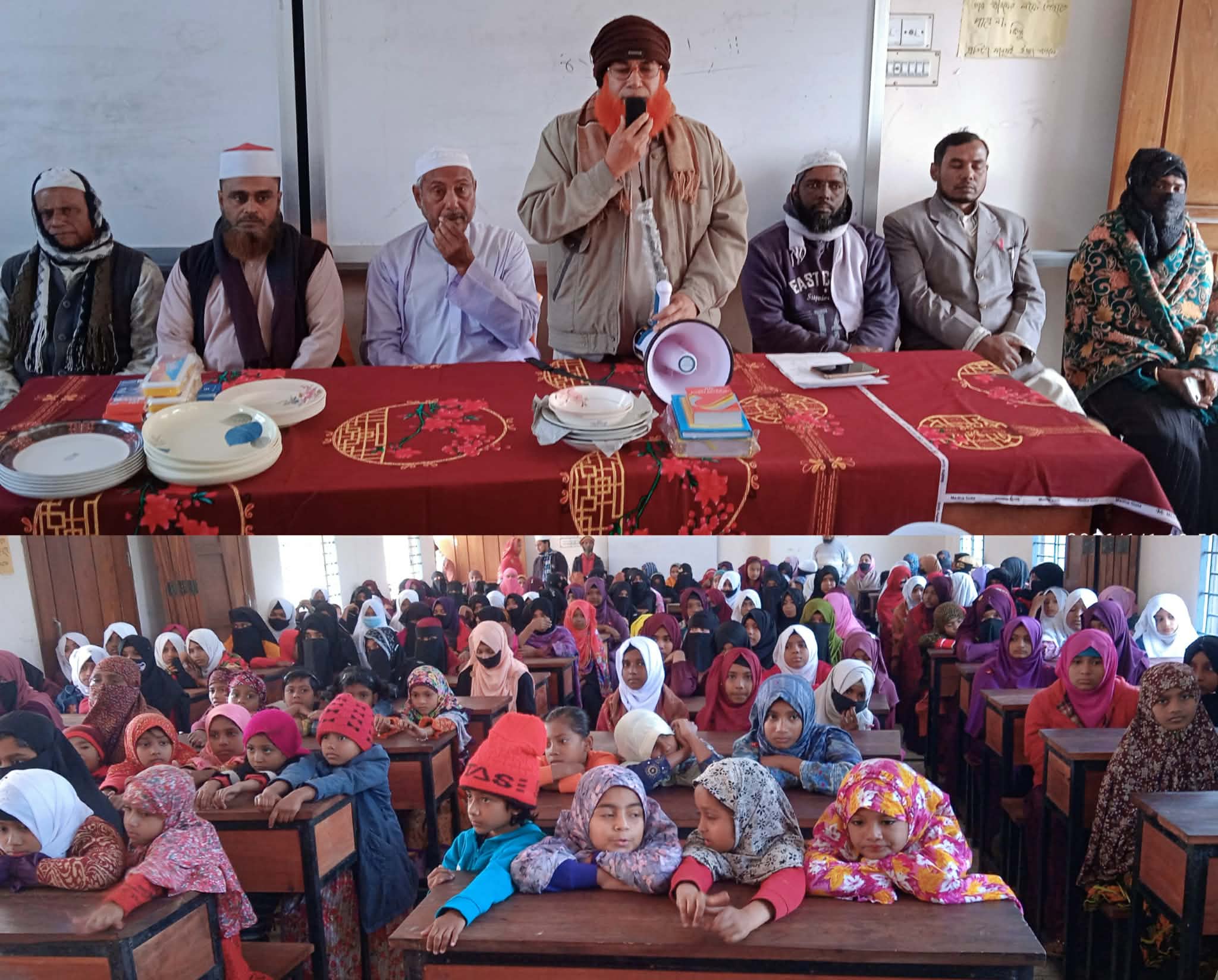 আরবী প্রভাষক আবু হানিফের পরিচালনায় বক্তব্য রাখেন ও উপস্থিত ছিলেন সহকারী অধ্যাপক শামছুর রহমান, ফজলুর রহমান, বদিউজ্জামাল, প্রভাষক মনিরুল ইসলাম, সহকারী শিক্ষক শফিকুল ইসলাম, শাহাদাৎ হোসেন, সহকারী মৌলভী আব্দুর রউফ, মিজানুর রহমান প্রমুখ।