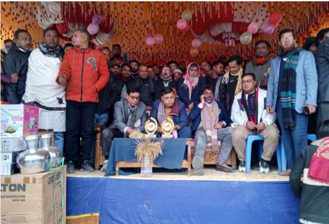 গত ৫ জানুয়ারি সোমবার বিকেলে জামালপুর সদর উপজেলার দিগপাইত ইউনিয়নের ছোনটিয়া সাধুরপাড়াস্থ ঐতিহ্যবাহী ঘোড় দৌড় উপলক্ষ্যে আয়োজিত মেলায় প্রধান অতিথি হিসেবে উপস্থিত ছিলেন-জামালপুর সদর আসনের বিএনপি মনোনীত এমপি প্রার্থী জেলা বিএনপি’র সাধারন সম্পাদক এড. শাহ মো. ওয়ারেছ আলী মামুন। ছবি ও কথা-কামরুল হাসান।