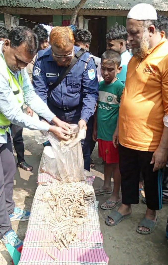 মোঃ কামাল হোসেন প্রধান জেলা প্রতিনিধি নরসিংদীঃ নরসিংদীর শিবপুর উপজেলায় পুটিয়া ইউনিয়ন এর ৯ নং ওয়ার্ড সাবেক মেম্বার আলহাজ্ব গিয়াস উদ্দিন মোল্লার বাড়ির সামনের উঠান থেকে অদ্য ২৪ জানুয়ারি ২০২৬ ইং শনিবার সকাল ১ ১ ঘটিকা সময় মাটিতে পুতে রাখা পরিত্যক্ত অবস্থায় বিপুল পরিমাণ গুলি মাটি খুঁড়ে উদ্ধার করেছেন শিবপুর মডেল থানার পুলিশ। যানা