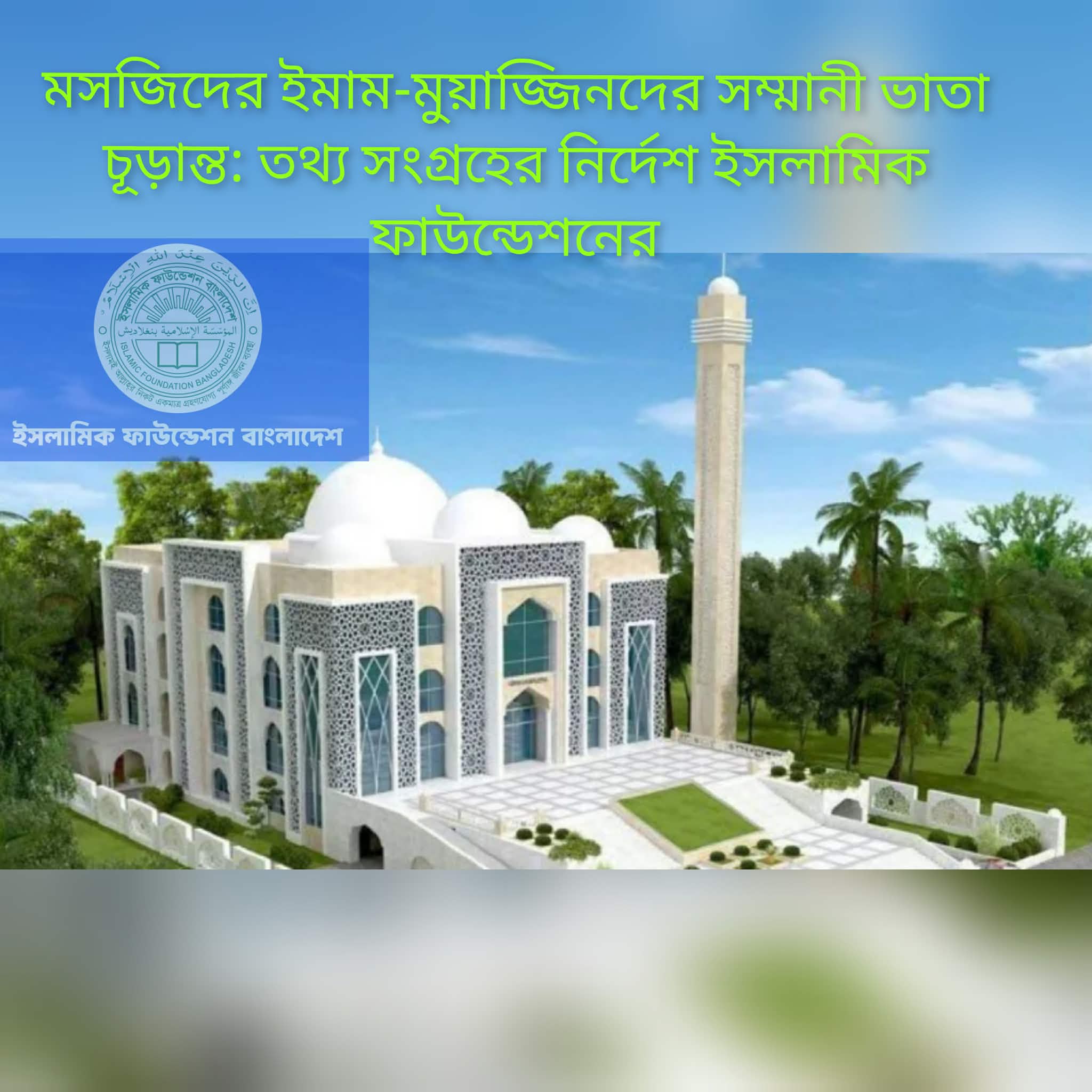 নির্বাচনী প্রতিশ্রুতি বাস্তবায়নের লক্ষ্যে সারা দেশের মসজিদের খতিব, ইমাম, মুয়াজ্জিন ও খাদেমদের জন্য সরকারি সম্মানী ভাতা প্রদানের প্রক্রিয়া শুরু করেছে সরকার। এরই অংশ হিসেবে দেশের সকল মসজিদের জনবল ও প্রয়োজনীয় তথ্যের তালিকা চেয়েছে ইসলামিক ফাউন্ডেশন (ইফা)।