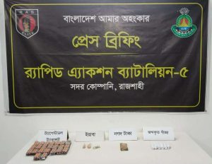 রাজশাহী মহানগরীর রাজপাড়া থানা এলাকায় অভিযান চালিয়ে বিপুল পরিমাণ ট্যাপেন্টাডল ট্যাবলেট, ইয়াবা ও গাঁজাসহ দুই মাদক ব্যবসায়ীকে গ্রেফতার করেছে র্যাব-৫। রোববার (১ মার্চ) রাতে নগরীর দাশপুকুর মোড় সংলগ্ন এলাকায় এই অভিযান পরিচালনা করা হয়।