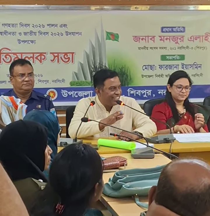 নরসিংদীর শিবপুরে ২৫ মার্চ গণহত্যা দিবস পালন ও ২৬ মার্চ মহান স্বাধীনতা ও জাতীয় দিবস ২০২৬ ইং উদযাপন উপলক্ষে প্রস্তুতিমূলক সভা অনুষ্ঠিত হয়েছে।