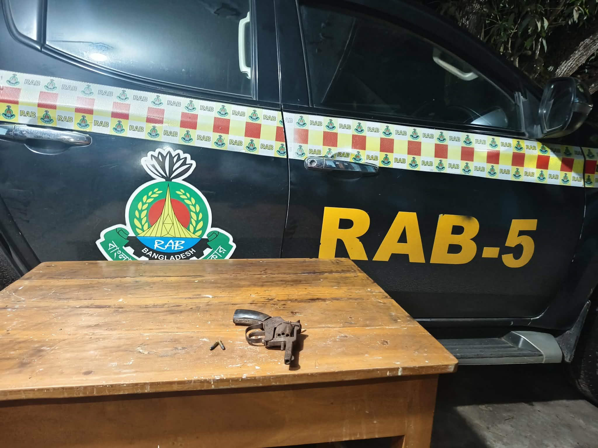 র্যাব সূত্রে জানা গেছে, গোপন সংবাদের ভিত্তিতে র্যাব-৫, রাজশাহীর সদর কোম্পানীর একটি চৌকস দল চারঘাট থানাধীন রাওথা বালুরঘাট পদ্মা নদীর পূর্ব তীর সংলগ্ন এলাকায় অবস্থান নেয়। রাত আনুমানিক ১২:৩০ ঘটিকায় পরিচালিত এই অভিযানে পরিত্যক্ত অবস্থায় একটি বিদেশি রিভলবার ও ০২টি কার্তুজ উদ্ধার করা হয়।