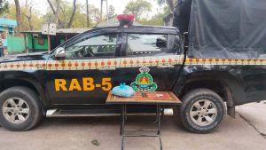 ​এ সময় একটি ভ্যানকে সন্দেহ হলে সেটি থামিয়ে তল্লাশি চালায় র‍্যাব সদস্যরা। পরে ভ্যানের সিট কভারের নিচে সুকৌশলে লুকিয়ে রাখা অবস্থায় ১ কেজি গাঁজা উদ্ধার করা হয়। অভিযানে মাদক বিক্রির নগদ ৭০০ টাকা, একটি মোবাইল ফোন ও দুটি সিমকার্ডসহ ভ্যানটি জব্দ করা হয়।