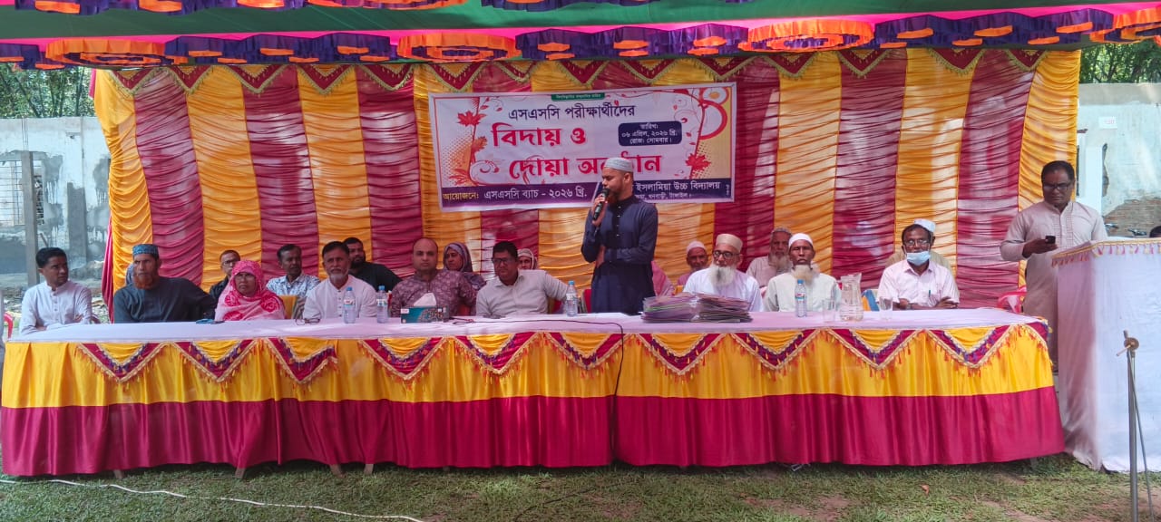 শিক্ষার্থীদের প্রতি আন্তরিক ভালোবাসা, ভবিষ্যৎ জীবনে সফলতার প্রত্যাশা এবং সমাজ ও দেশের কল্যাণে অবদান রাখার আহ্বান। তারা বলেন, শিক্ষা মানুষের জীবনের আলোকবর্তিকা, আর পরীক্ষার মাধ্যমে সেই আলোর পথ আরও সুদৃঢ় হয়। অভিভাবক ও শিক্ষানুরাগীরা বিদ্যালয়ের শিক্ষার মান উন্নয়নে সহযোগিতার আশ্বাস দেন এবং শিক্ষার্থীদের প্রতি তাদের মমত্ববোধ প্রকাশ করেন। পরীক্ষার্থীরা অতিথিদের দোয়া ও শুভেচ্ছা গ্রহণ করে নতুন জীবনের পথে এগিয়ে যাওয়ার দৃঢ় প্রত্যয় ব্যক্ত করে। বিদায়ের মুহূর্তে বিদ্যালয় প্রাঙ্গণ ভরে ওঠে স্নেহ, ভালোবাসা ও আশীর্বাদের সুমধুর সুরে। অনুষ্ঠানটি ছিল আবেগঘন, শ্রুতিমধুর এবং অনুপ্রেরণামূলক। উপস্থাপনায় ছিলেন বিদ্যালয়ের শিক্ষক জনাব মো: বাদল মিয়া। এই বিদায় ও দোয়া অনুষ্ঠান শিক্ষার্থীদের জীবনে এক স্মরণীয় অধ্যায় হয়ে থাকবে, যা তাদের ভবিষ্যৎ পথচলায় শক্তি ও সাহস যোগাবে।